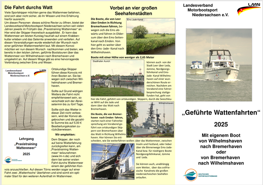 Um diesen Personen dieses schöne Revier zu öffnen, bietet der Landesverband Motorbootsport Niedersachsen schon seit vielen Jahren jeweils im Frühjahr das „Praxistraining Wattenmeer“ an.