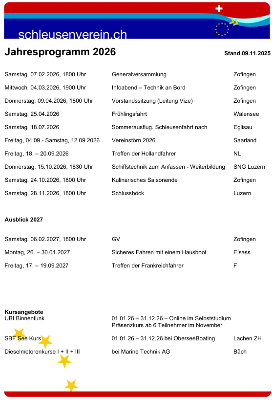 Programm schleusenverein.ch 2026