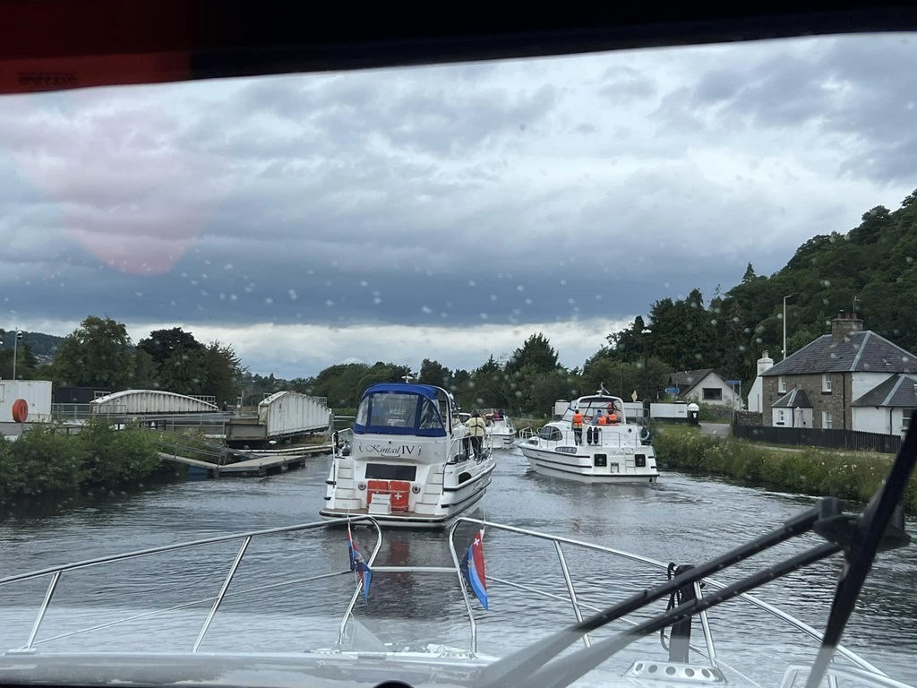 Danach hiess es Leinen los, der Schottland Törn hatte nun endgültig begonnen. Im Konvoi fuhren wir los und passierten im Anschluss zwei drehbare Brücken die für uns geöffnet werden mussten - an den Abständen müssen wir noch etwas arbeiten! Vor dem Dochgarroch Lock machten wir fest, der erste Tag haben wir ohne Probleme geschafft. Um 18:00 Uhr gab es den ersten Anlegetrunk, welcher genügend Zeit bot um über das Erlebte zu Klönschnacken. Das Nachtessen kam aus der Bordkombüse, die Spaghetti haben herrlich geschmeckt. Morgen geht es weiter, wir freuen uns auf die Überfahrt über das Loch Ness. Nessie wir kommen!