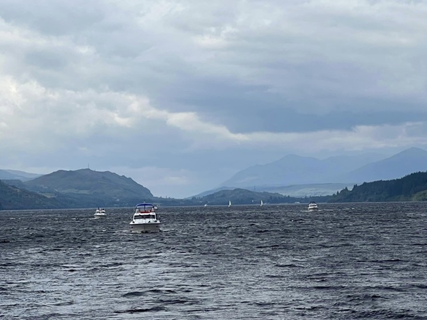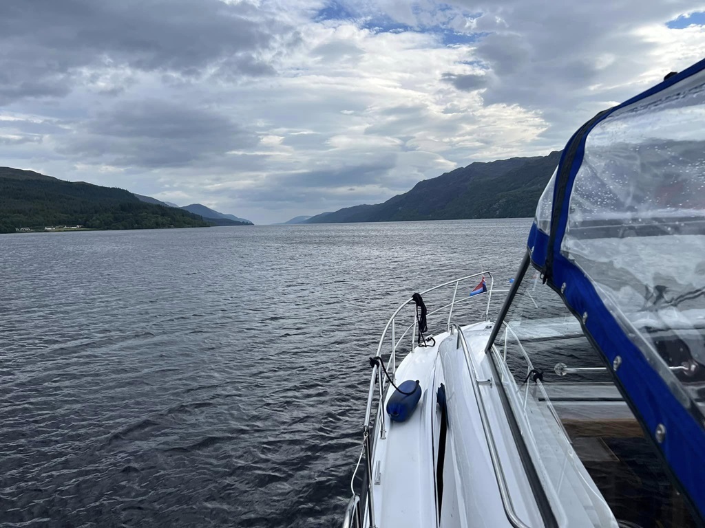 Auf Loch Ness hatten wir ziemlichen Wellengang, zum Teil hatten die Wellen kleine Schaumkrönchen. Zum Glück kam der Wind von hinten und die Wellen liefen mit uns, was uns eine entspannte Fahrt ermöglichte.