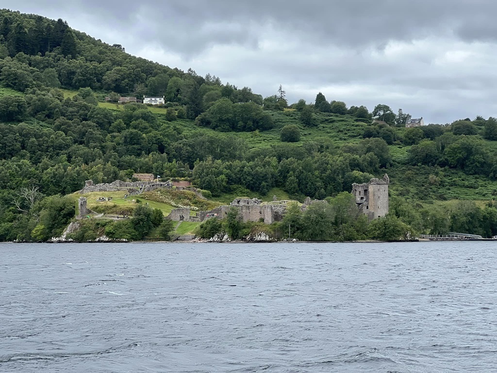 Wir fuhren an der Ruine Urquhart Castle vorbei, die über dem See gelegen ist. Die Burg stammt aus dem 13. Jahrhundert und hat eine bewegte Geschichte voller Belagerungen und Besitzerwechsel. Im 17. Jahrhundert wurde sie aufgegeben und gesprengt, um sie nicht den Jakobiten zu überlassen. Heute ist Urquhart Castle ein beliebtes Ziel für Touristen, die von hier aus einen weiten Blick über Loch Ness genießen können. Obwohl wir das Schloss nicht besuchten, war der Anblick der alten Mauern vom Wasser aus beeindruckend.