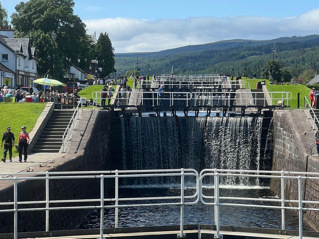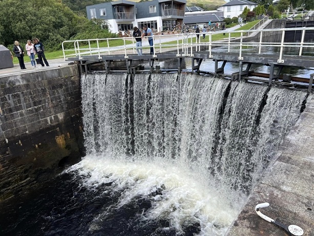 Nach dem Passieren der Schleuse setzten wir unsere Fahrt in Richtung Fort Augustus fort. Vor der Schleusentreppe in Fort Augustus mussten wir etwas länger warten. Diese besteht aus fünf Schleusen und bringen die Schiffe auf das Niveau des Loch Ness. Ein beeindruckendes Bauwerk aus dem 19. Jahrhundert.