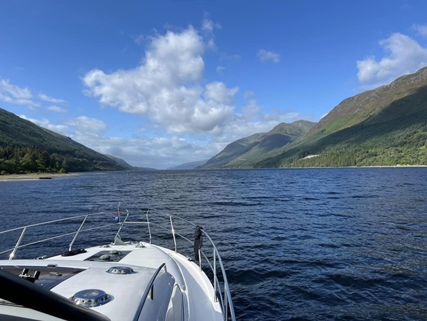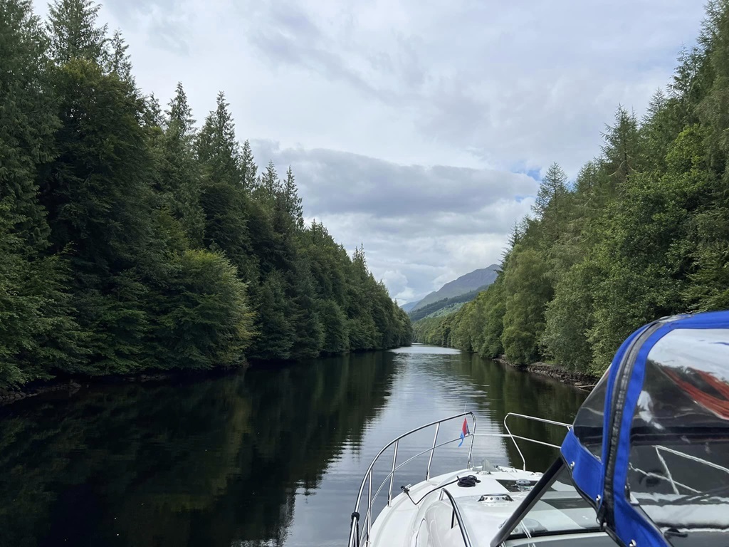 Heute starteten wir nach einer ruhigen Nacht am Ufer von Loch Oich unsere Fahrt Richtung Fort Augustus. Das Wetter war angenehm und der See ruhig.