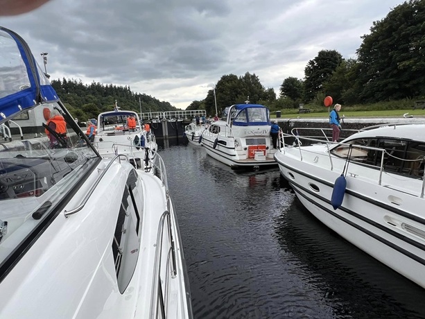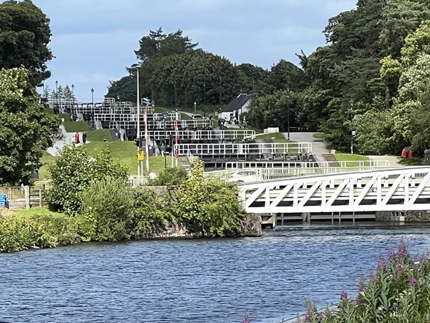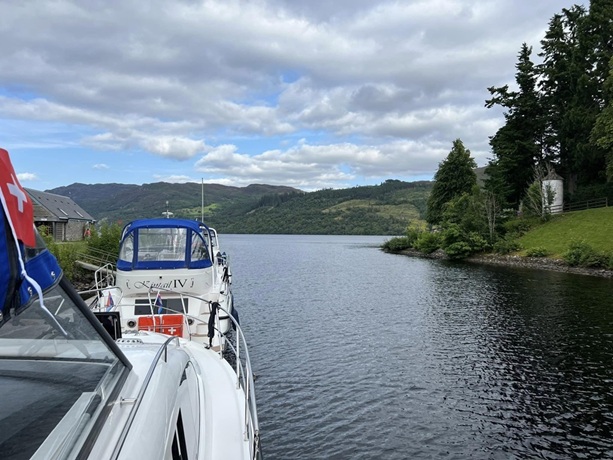 Nach dem Passieren des Dochgarroch Lock nehmen wir Kurs auf das Loch Ness. Dieser Sagen umworbene See ist der östlichste und größte der drei langgestreckten Süßwasserseen im Great Glen, welches die schottischen Highlands von der Schottischen See bis zur Nordsee in einer gerader Linie vollständig durchschneidet. Vom oberen Ende bei Fort Augustus, erstreckt sich Loch Ness über 36 km nordostwärts bis zum Abfluss in den River Ness. Gemessen an der Wasseroberfläche von 56,4 km² ist Loch Ness nach Loch Lomond der zweitgrößte See Schottlands. Auf dem See angekommen halten wir natürlich Ausschau nach dem Ungeheuer von Loch Ness. Nessie wird üblicherweise als Plesiosaurier beschrieben, mit einer Länge von bis zu 20 Metern - leider haben wir es nicht gesehen! Dafür geniessen wir die einzigartige Landschaft und bestaunen Urquhart Castle eine Burgruine aus 12. Jahrhundert. Nach etwas mehr als 3 Stunden erreichten wir Fort Augustus mit seiner Schleusentreppe. Nach dem Anmelden bei den Schleusern mussten wir uns noch etwas gedulden. Nach dem Briefing mit dem Chef Schleuser geht es los! Wir fahren in die erste der fünf Schleusen ein machen fest, ab jetzt ist Handarbeit angesagt. Wir sind nun die Attraktion in den Schleusen und werden von den vielen Zuschauern teils neidisch beobachtet. Schleuse um Schleuse bringen wir hinter uns! Oberhalb der Schleusentreppe gibt es einen Anleger an dem wir fest machen und die Nacht verbringen. Den Abend benutzen wir um die Schleusentreppe zu Fuss nochmals anzuschauen und bei einem der vielen Restaurants einen „Schlummi“ zu trinken.