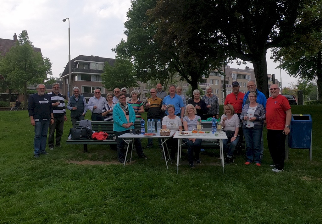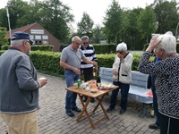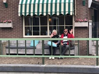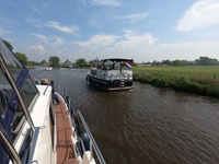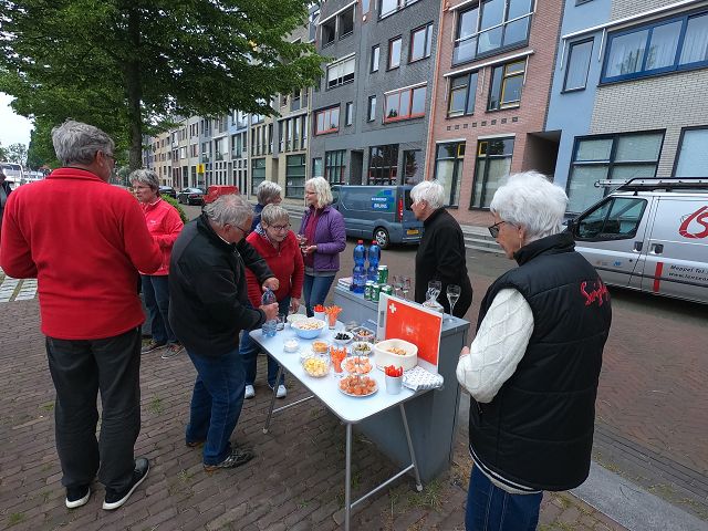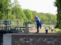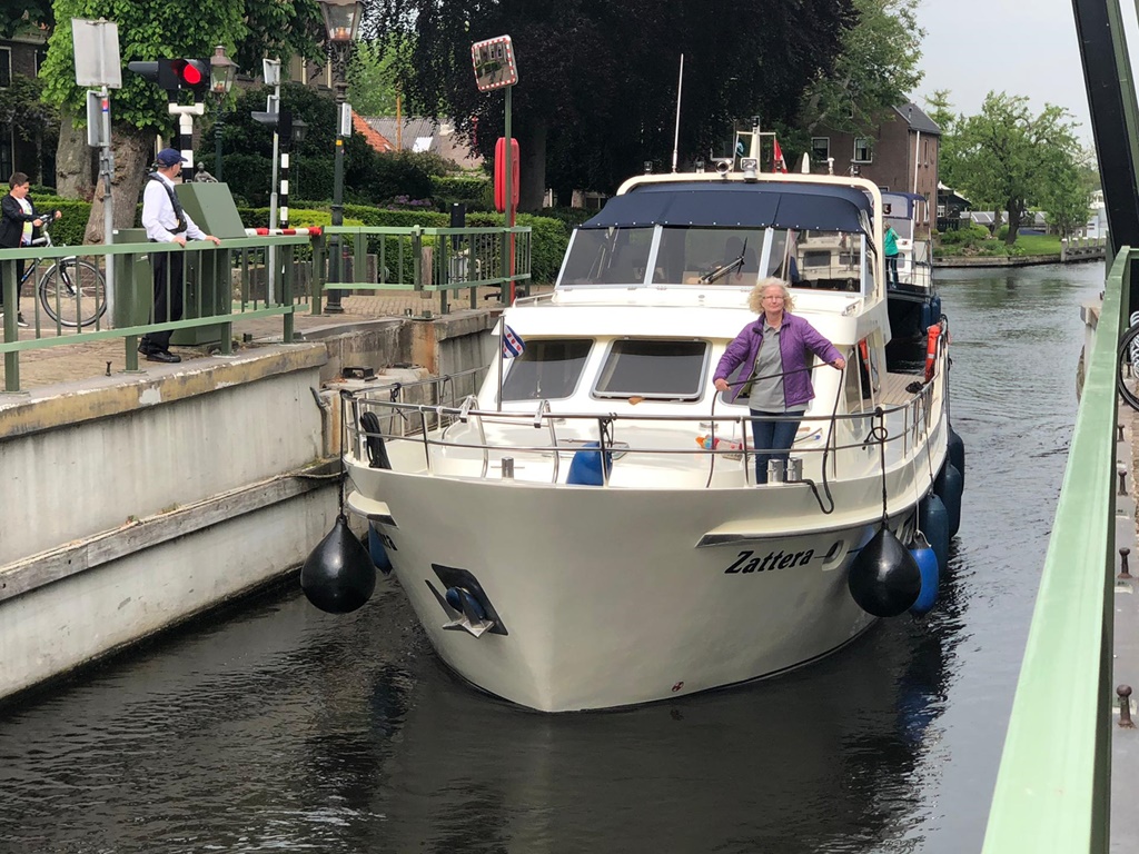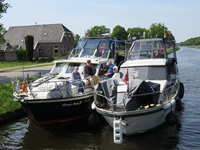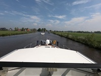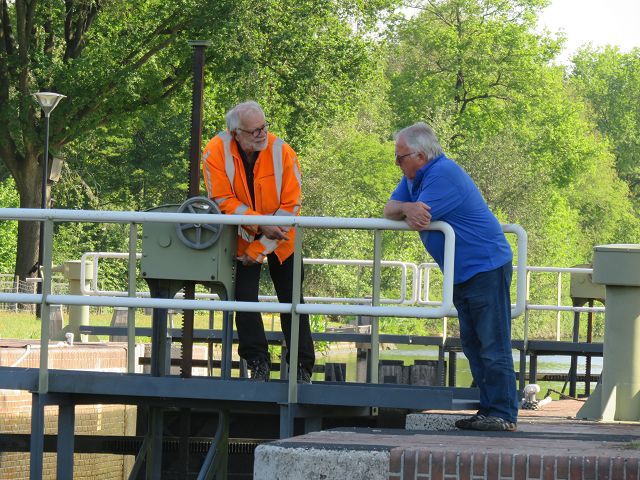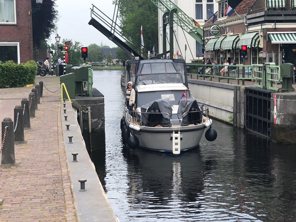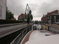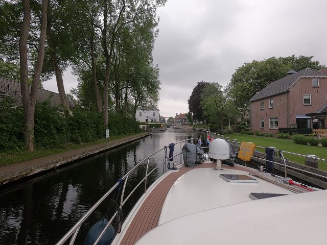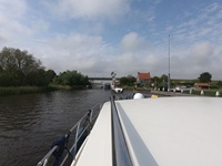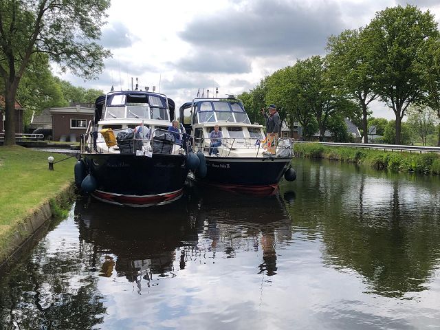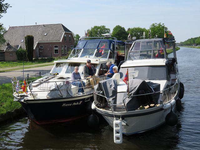 Heute Morgen verlassen uns nach dem Frühstück wieder zwei Schiffe. Sie müssen zurück zu den Mietbasen, um die Schiffe am Freitag wieder abgeben zu können. Die Rundreise der übrigen fünf Schiffe führt uns über die derentsche Hooftfaart bis nach Diverbrug. Der Start auf dem Kanal ist etwas holprig, da jeweils nur 2 Schiffe in den Schleusen mehr oder weniger gut Platz haben. Die Brücken werden grundsätzlich schnell bedient, da ein Brückenwart jeweils für mehrere Brücken zuständig ist. Am Mittag wird in der Schleuse sogar "Überzeit" gearbeitet, damit wir wenigstens mit vier Schiffen zusammen bleiben. Am Nachmittag um vier Uhr erreichen wir das Tagesziel Diverbrug, wo auch der mittlerweile obligate Anlegetrunk (Mit Apero Buffet) stattfindet. Sogar der Fotograf der Regionalzeitung macht Fotos für die morgige Zeitung. So viele Schweizer an einem Haufen findet er nicht so schnell wieder. Das Wetter hält sich gut, sonnig aber kühler Wind.