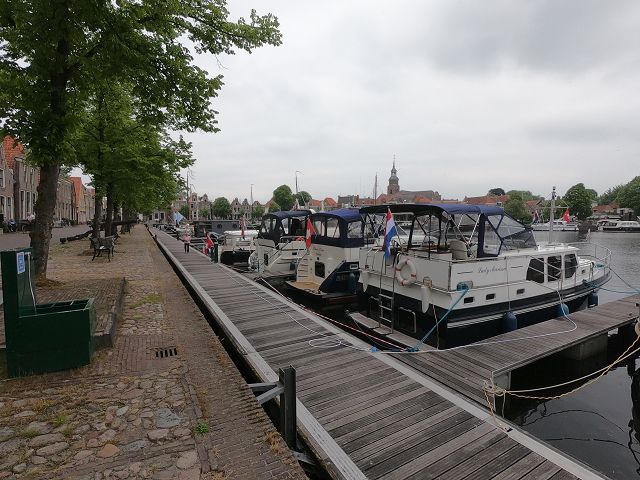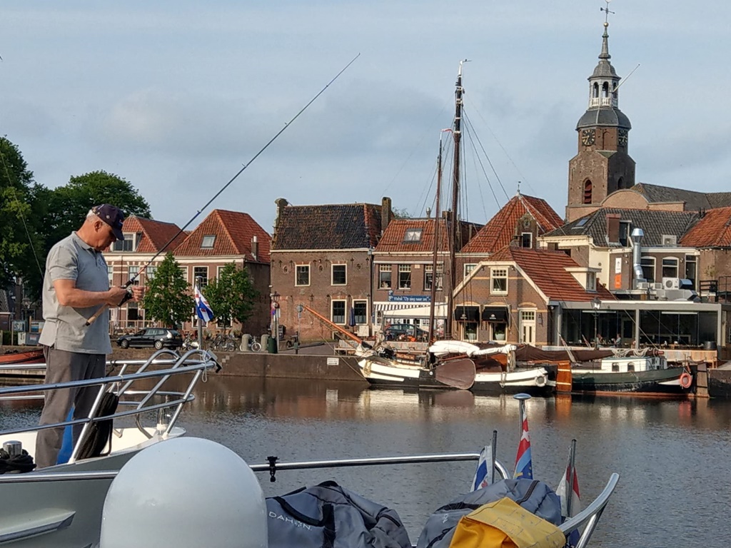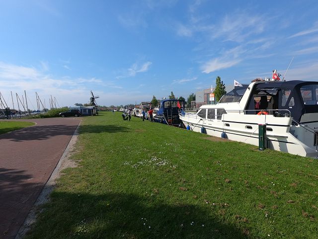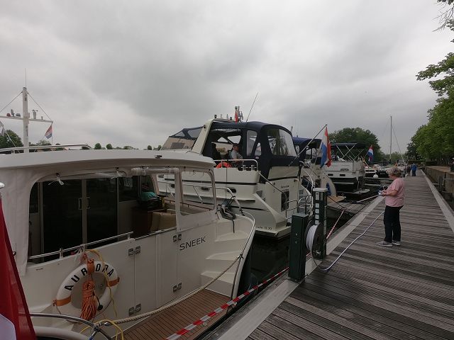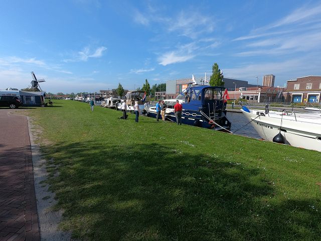 Ein grauer Morgen erwartet uns hier in Joure. Im Dorf gibt es beim Bäcker frische Gipfeli und Brötchen, was sofort das Lebensgefühl erhellt. Nach der Etappenbesprechung legen wir ab und fahren, anfangs in Kolonne in Richtung Langewarder, wo wir bald nach Süden abbiegen. Nun klart auch das Wetter auf und bei herrlichen Temperaturen und Sonnenschein erreichen wir Echtenerbrug. In der Zwischenzeit haben sich die Schiffe auf vier Gruppen unterteilt. Die niedrigen Schiffe können die Brücken ohne weiteres passieren und bekommen einigen Vorsprung. Nun geht es weiter via Kalenberger Gracht bis nach Blokzijl, wo die Gruppen nach und nach eintreffen. Den Anlege-Apero geniessen wir, nach dem auch die Nachzügler das Tagesziel erreicht haben.