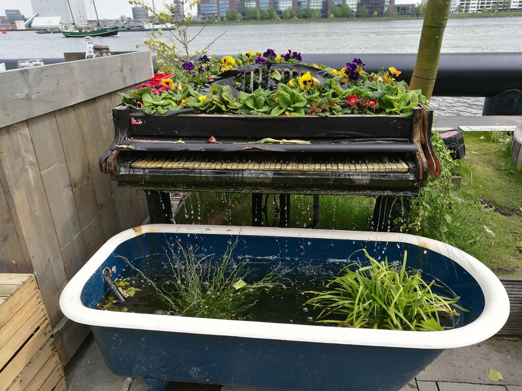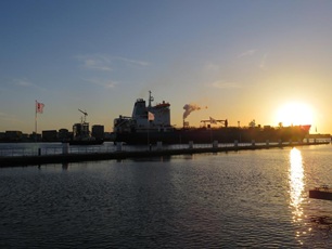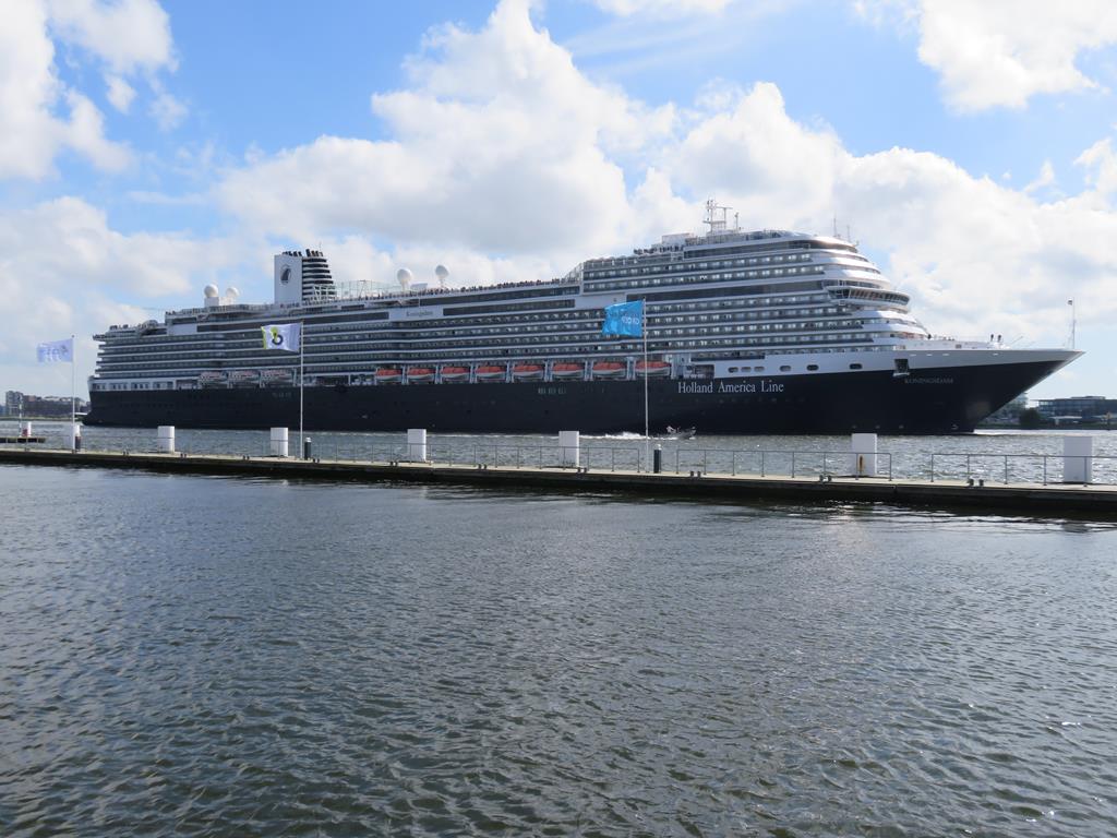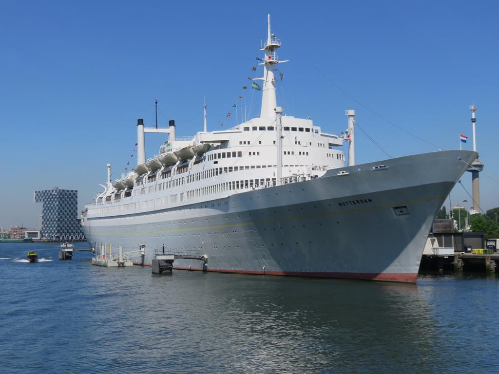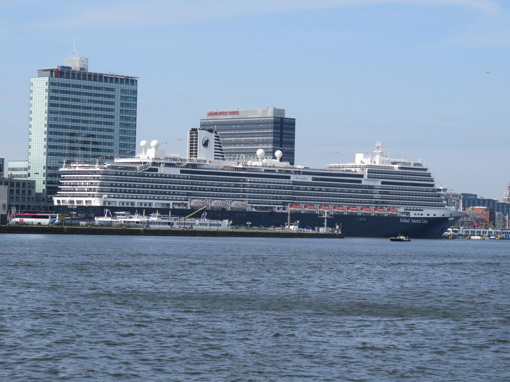 Zum Muttertag bekommt jede Dame eine Vase mit einer gelben Rose und für zuhause "Tulpen aus Amsterdam" die im nächsten Frühjahr blühen sollen. Die heutige Reise führt uns über den Amsterdam - Rhinkanaal nach Amsterdam. Der Konvoi der schleusenverein.ch-Schiffe setzt sich in Bewegung, nach dem die Vorhut bereits abgefahren ist. Nach dem wir in den A'dam - Rhinkanaal eingebogen sind, werden wir schon das erste Mal durchgeschüttelt. Es begegnen uns Hotel Schiffe, Tanker und andere Binnenschiffe, die an uns vorbei oder entgegen fahren. In Amsterdam biegen wir Backbord ab und fahren am Bahnhof vorbei, wo ein großes Kreuzfahrtschiff angelegt hat. In der Amsterdam Marina werden wir von unserem Vorfahrer an den Liegeplätzen eingewiesen. Schon bald können wir individuell den Rest des Tages mit einem Besuch in der Stadt oder geruhsamen Verweilen auf den Schiffen verbringen. Der Abend ist Wolkenlos und verabschiedet sich mit einem tollen Sonnenuntergang.