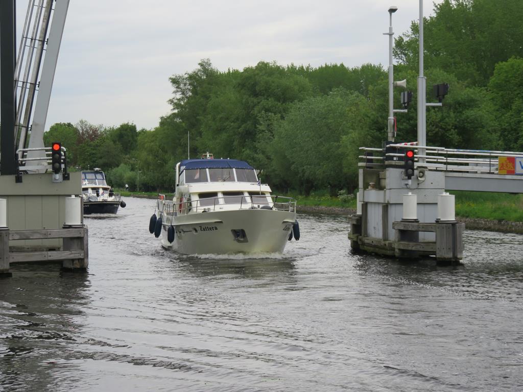 Heute steht eine lange Etappe an, weshalb der Start etwas früher angesetzt wurde. Kurz vor acht ist die Besprechung der heutigen Reise angesetzt. Wir fahren in zwei Etappen, so dass die Brücken bei der Durchfahrt durch Amsterdam nicht zulange geöffnet werden müssen. Die erste Gruppe ist bereits vor der Brücke als die zweite sich für die Abfahrt aufstellen möchte. Ein Mietschiff kann jedoch nicht gestartet werden, Batterie leer! Mit dem Know How von zwei Törn Teilnehmer kann das Schiff dann doch noch gestartet werden. Der Konvoi bewegt sich zur ersten Brücke und die Durchfahrt klappt reibungslos. Dies ist so bis zur fünften Brücke. Diese will einfach nicht öffnen. Auch ein Arbeitsschiff muss warten. Nach fast einer Stunde klappt es dann doch noch. Die Vermietung vom defekten Schiff liegt an der heutigen Rute. Also wird ein Zwischenstopp organisiert, so dass die defekte Batterie gewechselt werden kann. Das geht aber länger als gedacht, und eine neue Batterie steht auch nicht zur Verfügung. Nun sind also drei Gruppen unterwegs, die noch viele Brücken zu durchfahren haben. Die Gruppe eins und zwei, erreicht das Tagesziel Katwijck, die Gruppe drei bleibt in Leiden vor geschlossenen Brücken stecken. Das ist aber kein Problem, morgen finden alle wieder zusammen.