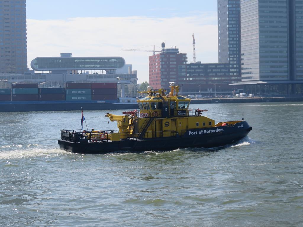 Ein schöner sonniger Tag erwartet uns heute. Nach einer warmen Nacht treffen wir uns um 9.30 Uhr beim Büro des Hafenmeister im Yachthafen Ijsselmonde. Zusammen spazieren wir zum Anleger des Wassertaxi, das uns zu den "Spido" Schiffen für die Hafenrundfahrt bringt. Die Wassertaxi fahren pünktlich um 10.00 Uhr ein und die Passagiere können einsteigen.