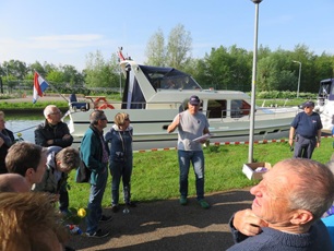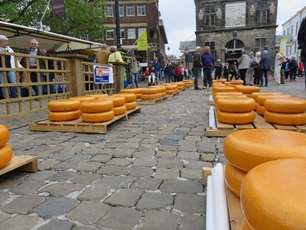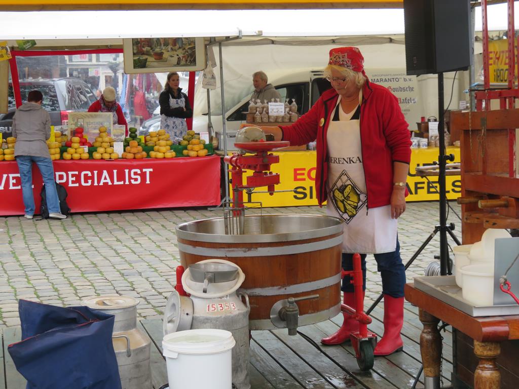Schon bald erreichen wir den Anleger vor Gouda, wo alle 11 Schiffe festmachen können. Beim eintreffen in der Stadt ist der Käsemarkt schon voll im Gange. Eine Trachtengruppe zeigt regionale Tänze und die Käsehändler feilschen um einen guten Verkaufspreis. Am Mittag sind alle zurück am Steg und zwei Schiffe verlassen uns hier. Nach der Verabschiedung fahren sie zurück zur Mietbasis in Aalsmere. Die anderen Schiffe fahren nach und nach los, da die nächste Schleuse nur ein bis zwei Schiffe fassen kann. Die Kolonne wird in die Länge gezogen, was die Durchfahrt der folgenden Brücken einfacher macht. Ab 16.00 Uhr erreicht ein Schiff nach dem Anderen, nach einer gemütlichen Fahrt, den Yachthafen von Marnemounde. Die letzten Schiffe bleiben vor einer Drehbrücke stecken, da diese bis 18.00 Uhr den Betrieb unterbricht. Am Schluss sind aber wieder alle Schiffe vereint und den letzte gemeinsame Abend können wir mit der ganzen Teilnehmerschar verbringen.