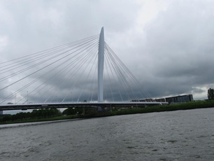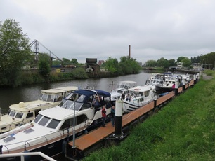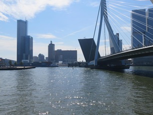 Hier schließen sich auch die zwei Schiffe, die gestern in Leiden übernachtet haben, dem Konvoi an. Nun geht die Fahrt weiter via Leidschendam. Hier wird der Konvoi wieder in zwei Gruppen geteilt. In der Schleuse haben nicht alle Schiffe Platz. Die Schleusung pro Gruppe dauert ca. 30 Minuten, was eine gute Distanz für die Brücken Durchfahrt der Kolonnen ergibt. Gegen 15.00 Uhr erreichen wir Rotterdam. Mit der letzten Schleuse geht es auf den Pegel des Waal (Rhein). Nun heißt es, Augen auf, ist doch sehr viel Berufsverkehr unterwegs. Bei der Bergfahrt tragen die Wassertaxi viel zum Wellengang bei. Kurz nach 16.00 Uhr erreichen wir den Zielhafen Ijsselmonde. Die Liegeplätze sind bereit, so dass alle elf Schiffe gut vertäut liegen können. Im Vereinslokal des örtlichen Club wird das "Anlegebier" genossen, bevor sich die einzelnen Crew's den geplanten Tätigkeiten widmen. Das schöne Wetter bleibt bis am Abend erhalten.